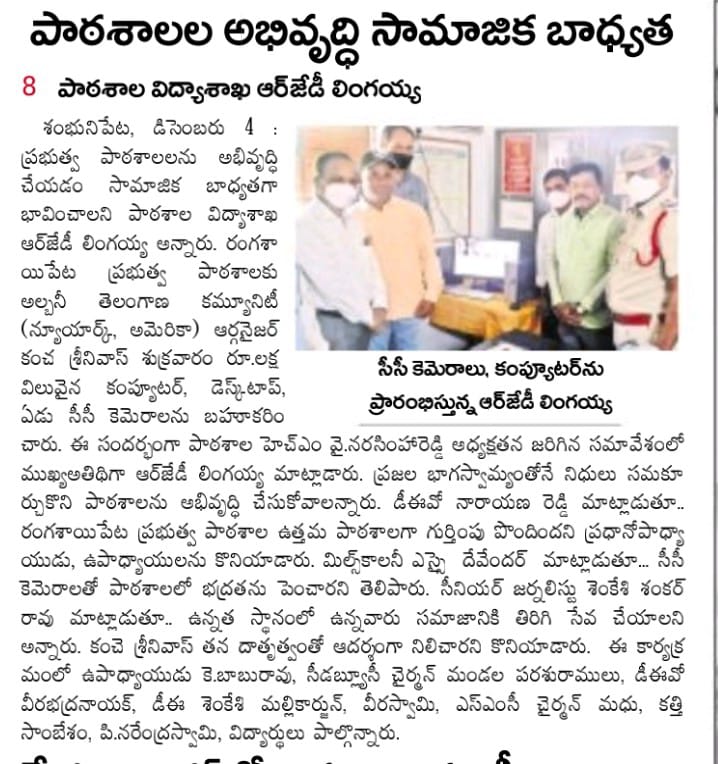 Digital Education and Infrastructure for Public schools – Co- Sponsor – Srini Kancha