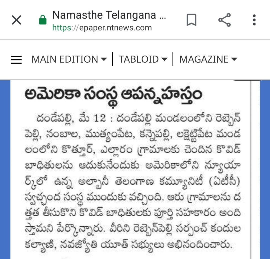 Covid-19 Relief Services – Adoption of Villages by Albany Telangana Community(ATC) – Food Distribution