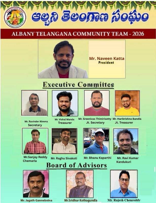 Welcome to our team page, where you can get to know the passionate individuals who drive the mission of Albany Telangana Community forward. Each member brings unique talents, expertise, and a shared commitment to serving the Telangana community in Albany, NY, and beyond. Explore our team profiles to learn more about the people shaping our organization and making a difference in our community.