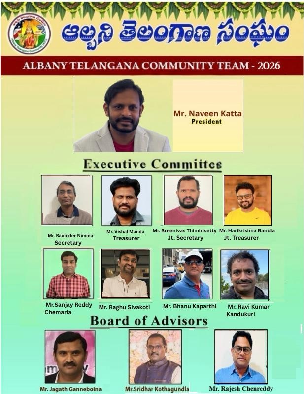 Welcome to our team page, where you can get to know the passionate individuals who drive the mission of Albany Telangana Community forward. Each member brings unique talents, expertise, and a shared commitment to serving the Telangana community in Albany, NY, and beyond. Explore our team profiles to learn more about the people shaping our organization and making a difference in our community.
